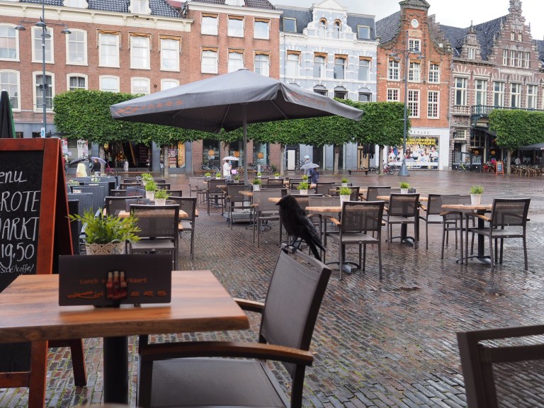 Haarlem station is actually pretty big and pretty nice. A lot of the old features and design are still there. We made our way out and headed into the town centre. It is a short walk over a canal bridge and into the centre. The church in the centre of town dominates the area. It was built in the fifteen hundreds and looks quite stunning. This square would be ideal to have some breakfast in and and admire its architecture. We chose a spot and received prompt service. An ominous cloud moved over us and darkened the sky. The breeze became a bit more forceful and as the waitress was coming with some of our meal we asked if we could sit closer under the better awning. Just in time soon there was an intense spell of rain that fell and the tourists that were around took refuge wherever they could. The rain provided some drama to the beginning of our day as we ate breakfast. There was also this waitress that was practicing how to carry things on a tray. It was her first day and Chrl told me that she remembers her days doing that job and wondered if she could ever do it again. Chances are she won’t have to.