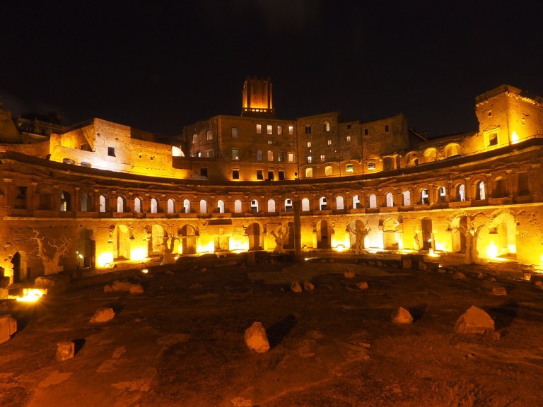 As we walked the route we walked through the remnants of Rome. The area behind the monument has columns that jut up into the sky signifying the importance of the structures that once stood here. Much of it is no longer standing. From the rubble archeologists have been able to restore what stands now. Some of it never needed any restoration but probably received some TLC from the experts. At this time of the day the whole area is lit up with artificial lighting giving these ruins a somber yet magnificent feel. A perfect setting for our celebration. These ruins were at one point the ancient Roman equivalent of government and presidential palaces. From the little descriptive signage one could get the sense of how they looked and functioned. Some had quite elaborate facades and additions. Some were temples and there were also places where Rome’s glory was celebrated through columns and arches of triumph. We still build monuments that commemorate such events to this day.