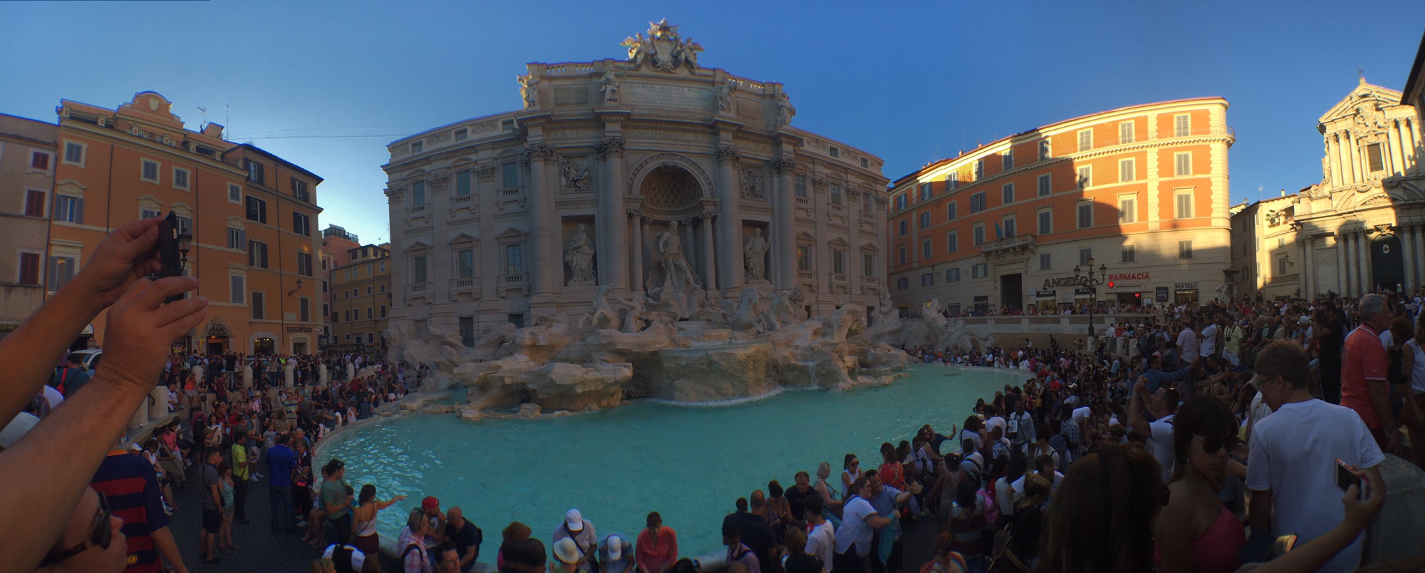 Our next point of interest was to go and see the Tevi Fountains. This is a popular place to visit while in Rome. It is close to the Altar of the Fatherland. I get a kick out of the name and the grandiosity of it. We finally saw some ticket guards so we validated the tickets that we had. Don’t want to chance getting harassed. The walk to the Fountains took us close to the Panthenon so we stopped to check it out. It was close to closing time and even though we were both hungry we stepped inside. The light was a much darker this time around. The sun was much lower in the sky as it was descending towards the horizon. This space is incredible and Chrl walked around looking at all the various parts within. We stopped at some restaurant and had a quick meal before setting out to the fountains. There was singing reverberating through the square outside first from an operatic singer and then from a rock cover band.