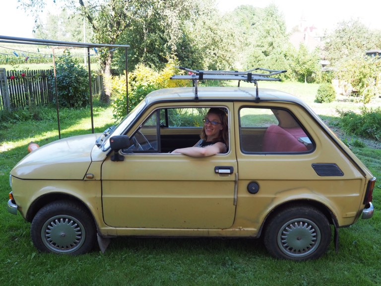 Ciocia Mila is my mom’s oldest sister and she lives just a stones throw away from Marysia. I remember her house from my youth as well. Her family home has remained virtually unchanged in all of that time. I make it a point to visit here every time I come to the village. The last time I was here I wasn’t able to see her husband because he wasn’t feeling well. Today he was home as were my cousin’s daughters who I was meeting for the first time along with my other cousin Andrzej who I know pretty well. We were warmly welcomed and sat in the sitting room for another catch up. We spoke about Chrl and I and our trip as well as the things going on in their lives. It really wasn’t enough time to get into a full discussion. Their yard was in a bit of a disarray as a new septic system was being put in. An old Fiat known as a malóch or “little one” was outside out of the garage. My parents sold them this car before we emigrated to Canada. It is a bit of a relic and collectors item. It is in great condition as it mostly sits in the garage occasionally started up to make sure that it works. We admired it and joked about it as it is such a little car.