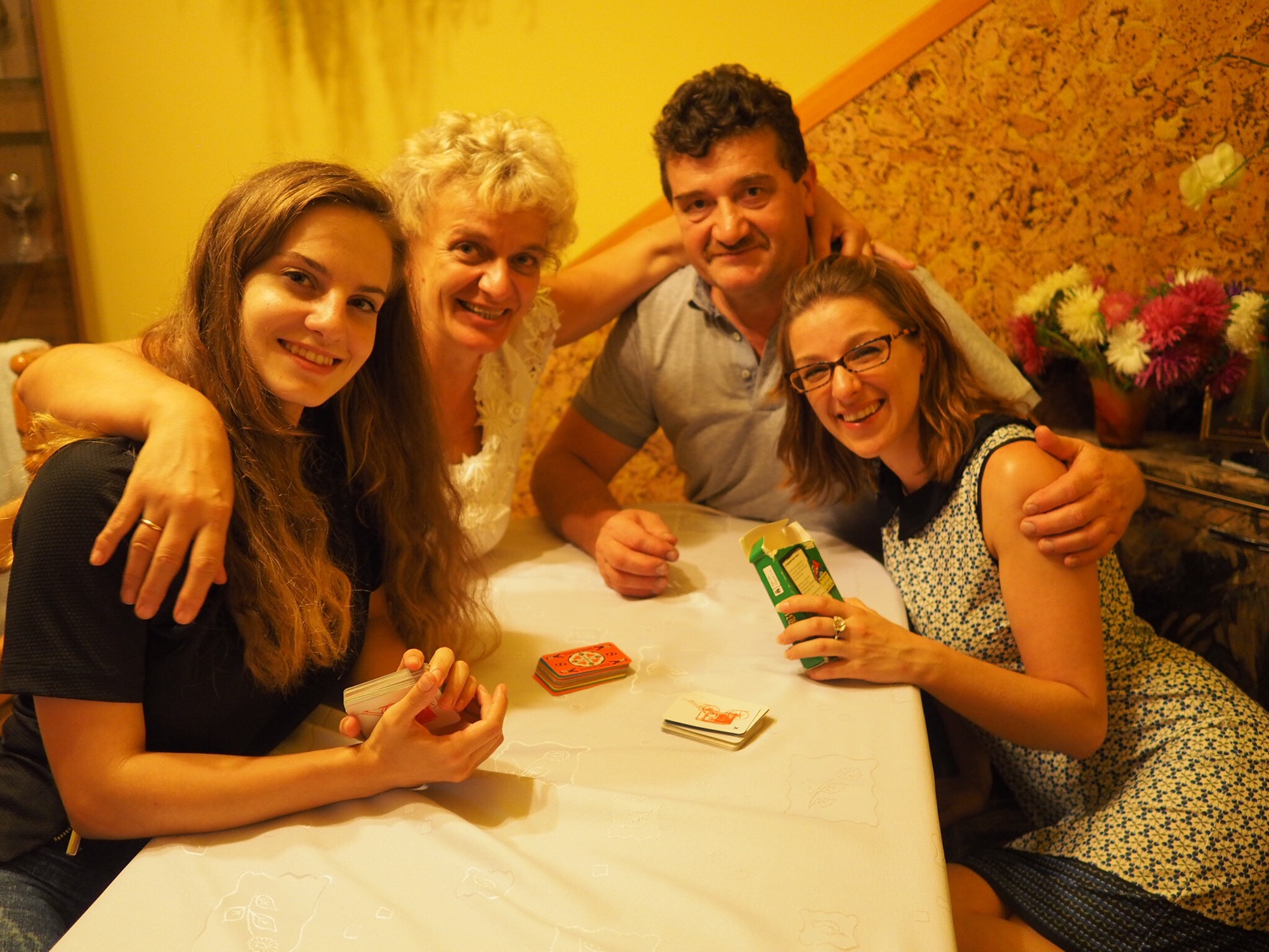 After dinner Chrl brought out her decks of Dutch Blitz. This is is a game invented by the Mennonites that conforms with their religious and cultural beliefs. It is a fast paced game that involves stacking numbered cards from a predetermined stack of cards and following a certain set of rules in revealing new cards and ending the game. It is a remarkably easily expandible game in order to allow more players to play. We played a practice round, three pairs of men and women. It began to get pretty competitive. Ewa and her husband caught on quite quickly winning all of the matches. We didn’t have a lot of time to play more as ciocia Irena was getting tired and wanted to sleep.
