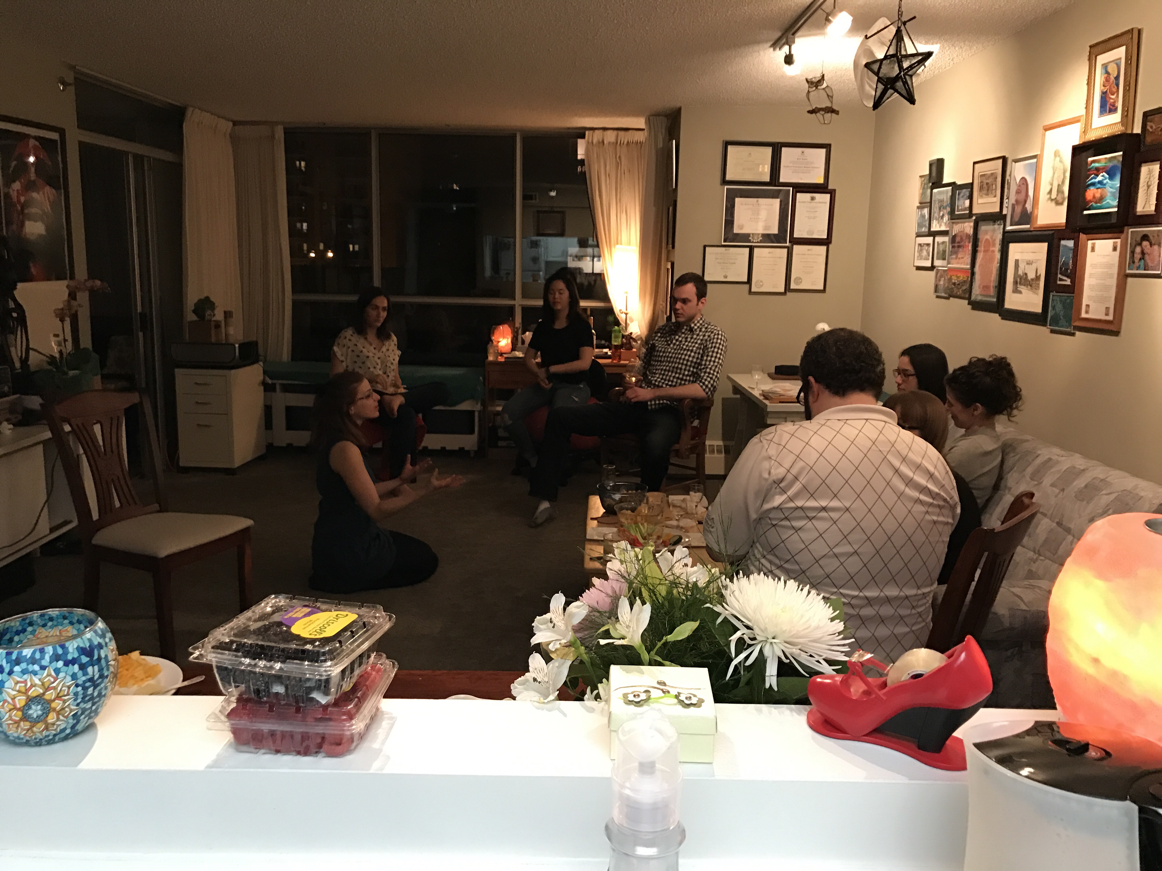 In the morning I started on the other tasks like the spring rolls and some of the cleaning and arranging. Chrl was doing some of the other tasks around the flat that needed to be done. We moved the table and set out plates and other snacks. I had to shower before the guests arrived. We were busy but we were also in a good mood as guests arrived. I made some introductory snacks that needed to be warmed and served. Things were falling into place as more people showed up. The meringues were slowly basting in the oven throughout the night. Chrl sat and chatted with all of the guests. They were all people from school that she hung out with and some that she wanted to get to know more. All of them have a wide range of experiences. Some have less according to the amount of time they have spent on this planet. Most of them were not local having been brought here for the opportunity at gaining an education and training at this university. There is a surprisingly wide range of ages represented here to go along with the wide range of views.
