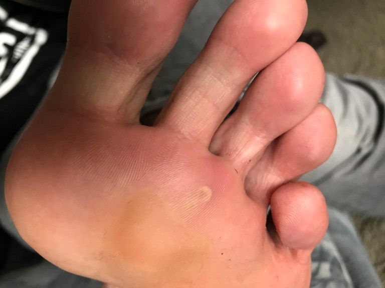 After work on Tuesday I decided to do something about it. I had a closer look at my foot. Looking at the sole of the foot is kind of difficult and touching different parts to find where the pain actually was didn’t reveal the culprit. I noticed that the blister that developed a few weeks ago felt like it was popped but it also looked like it travelled a bit too. I began to suspect that the pressure that I put on my foot during particular poses caused the blister to migrate. The original area didn’t have a lot of pain but the area where the blister migrated to did. The pressure forced the fluid to rip apart the layers of the skin in order to deal with the added pressure. I resolved to pierce the blister.