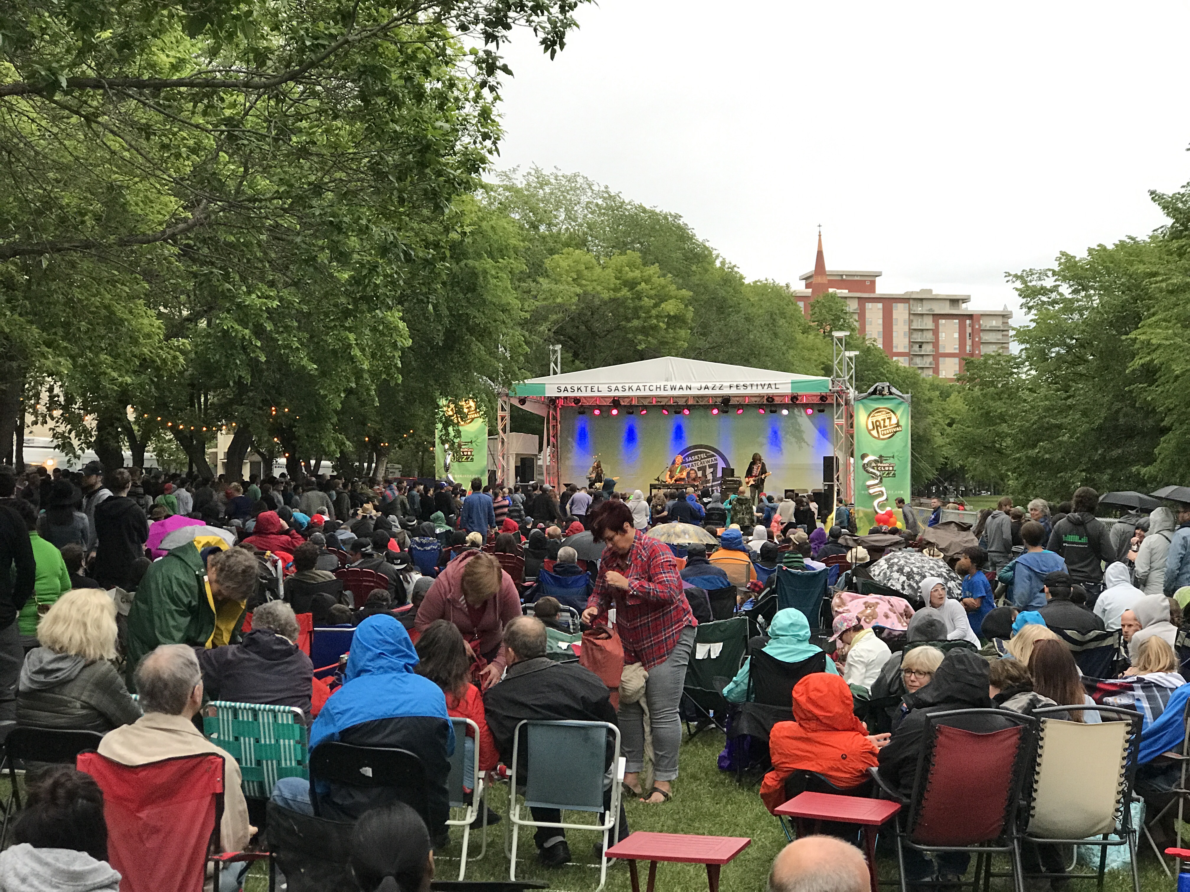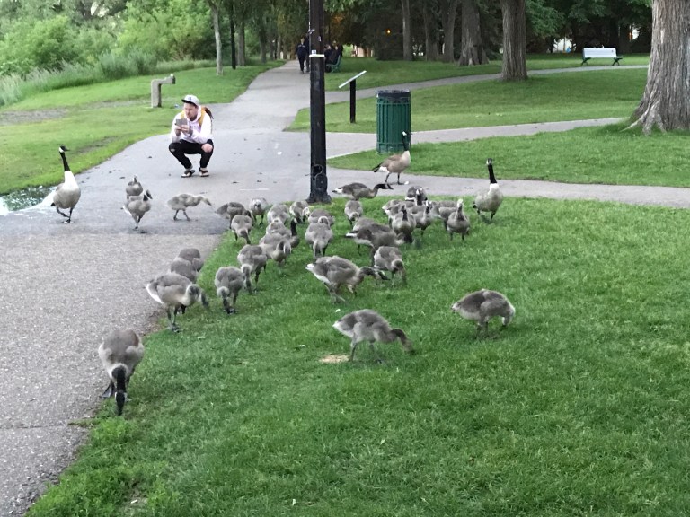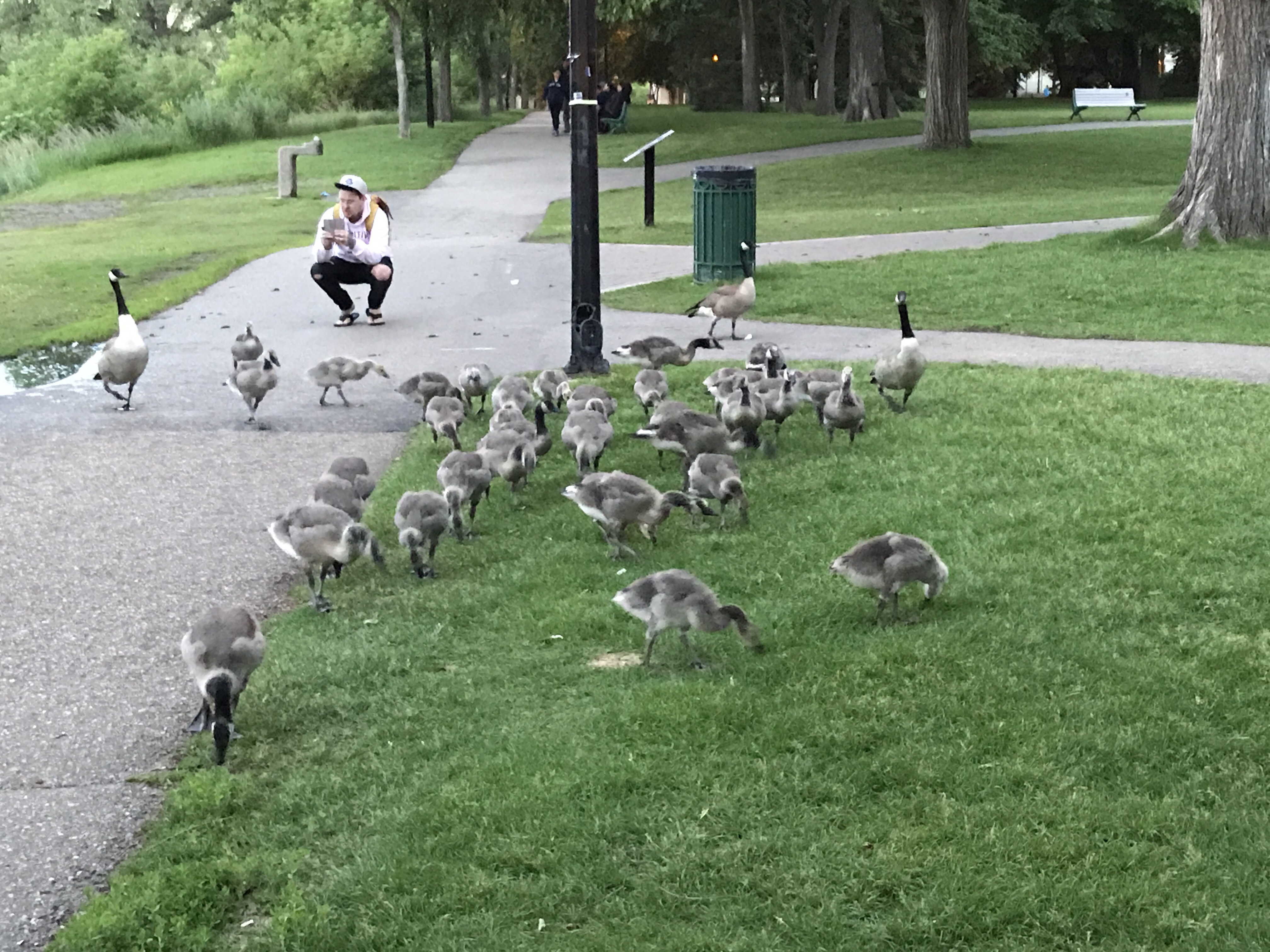 Later on we went and checked out Jazzfest again. There was another performer who was performing but we found that the Canada geese that were wandering around to be more fascinating. It appears that a group of parental units were supervising and herding their offspring together. We joked that the geese didn’t know who’s kids where theirs. It was neat to see them all acting in unison at any sign of danger from passing people rushing towards the water. One person allowed her child daughter a bit too close and an adult goose sounded the alarm and all of the geese retreated.