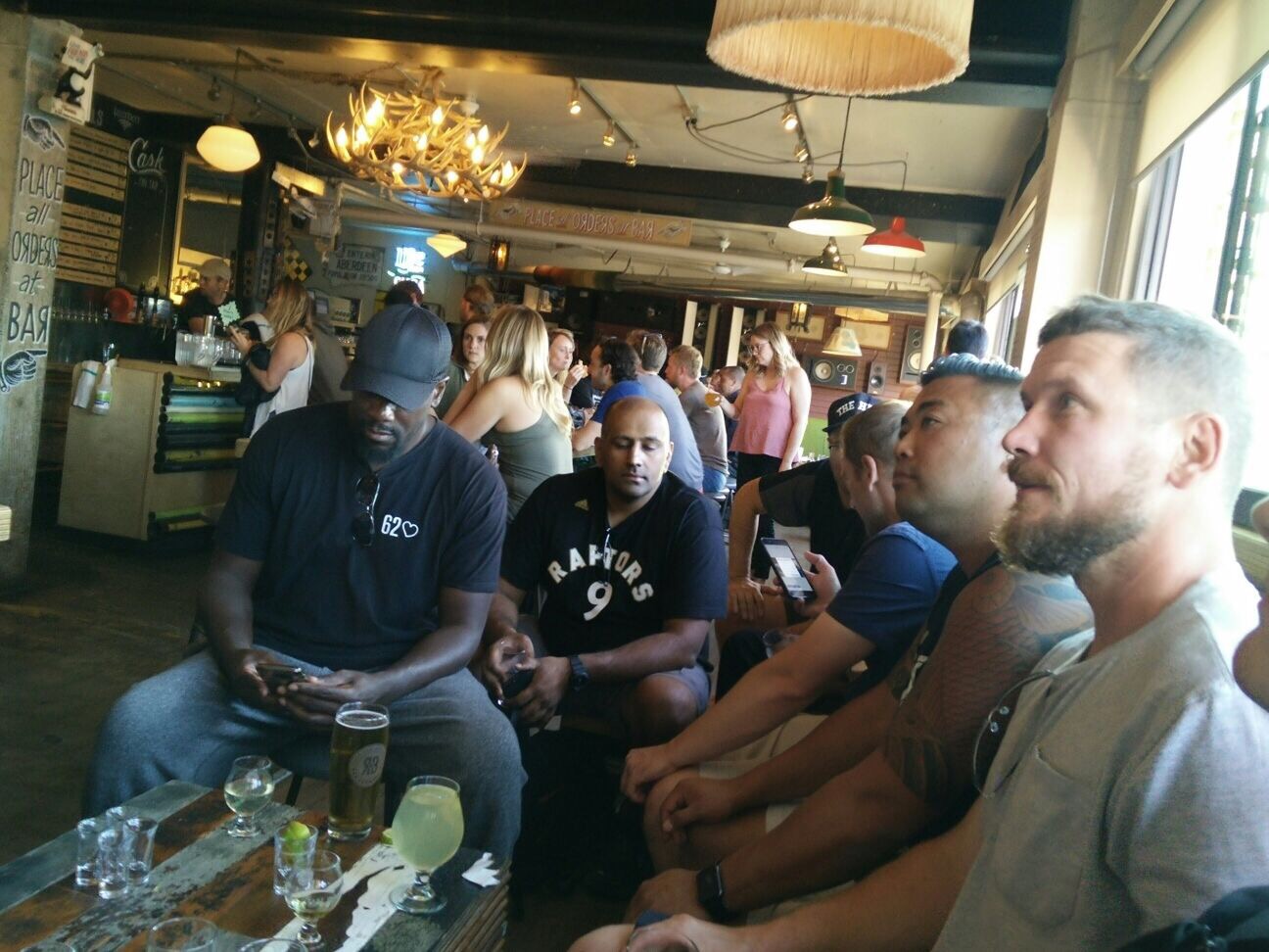This other place had t-shirts with b33r on it and we were there not quite long enough to finish our drinks. We continued on to another brewery in the area for another quick pint. The next place we were going to go to was on Granville Island. The olde steakhouse has been there for a while and inside there I was handed a Cesar and yet another shot. I was hoping to make it through this night unscathed it wasn’t looking that way at this point. It was getting dark and after visiting all of these breweries it was starting to add up. Most of us were probably too inebriated to be riding bicycles. I was anyways.